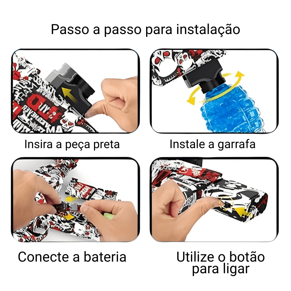 • Seguro e Divertido: As bolinhas de gel são atóxicas e se desintegram ao contato, sem deixar sujeira.