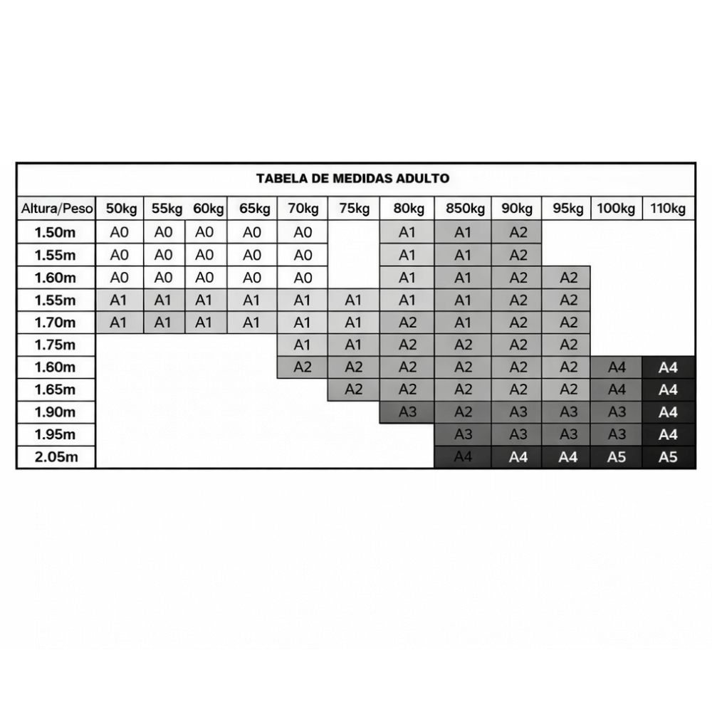 RECOMENDAÇÕES DE TAMANHO KIMONO ADULTO:
